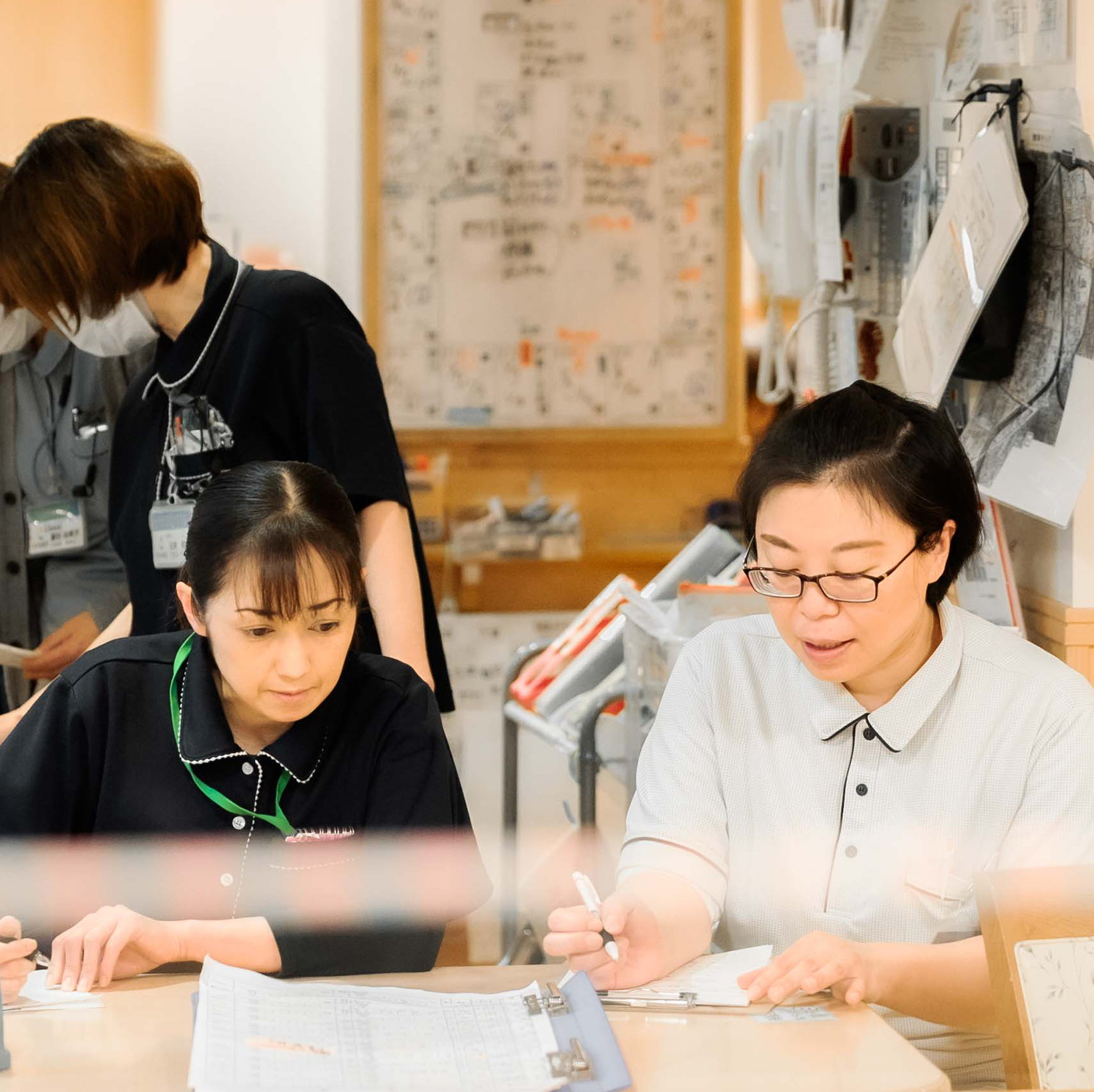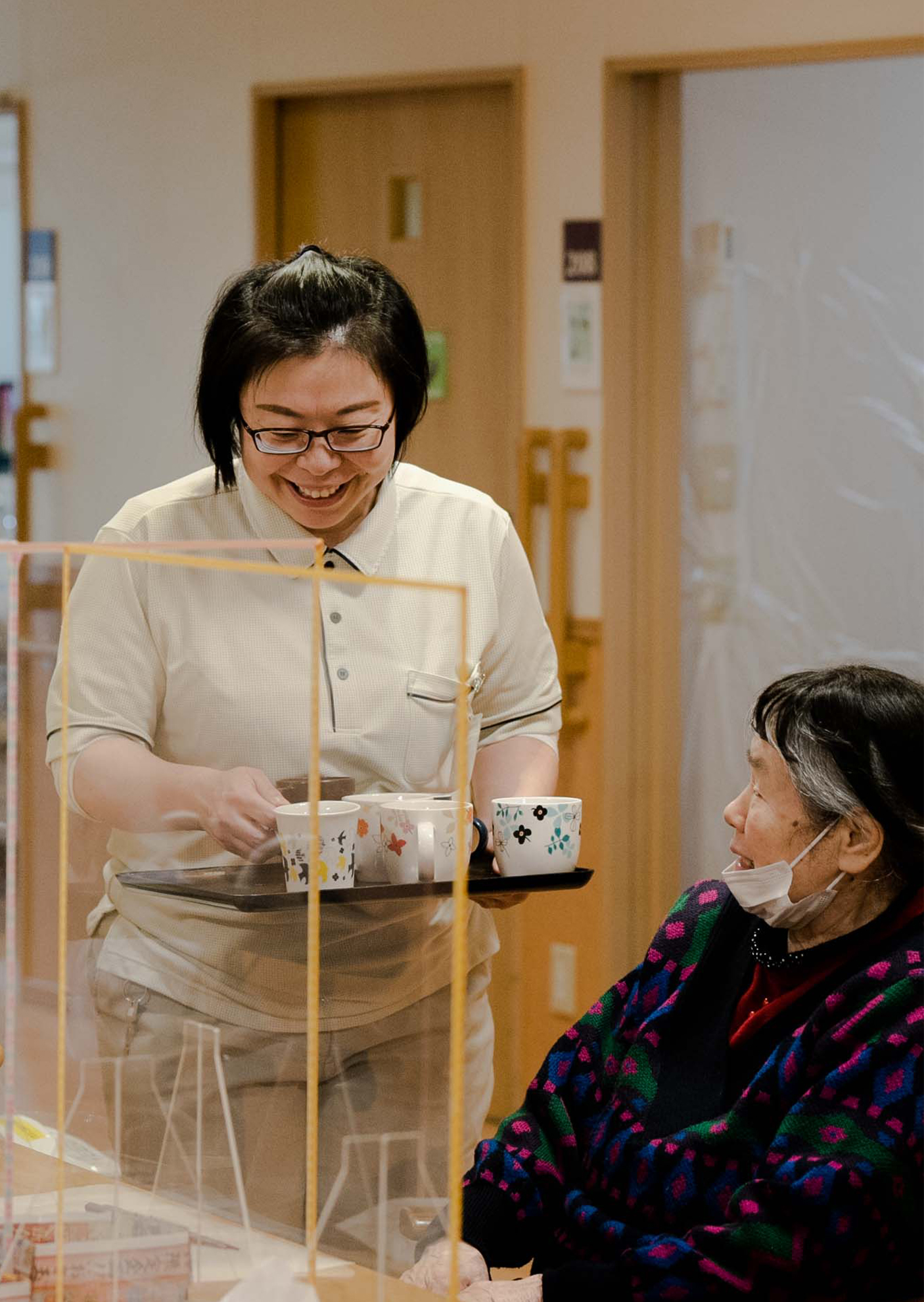 ショートステイの特徴は、とにかく利用者様の入れ替わりが激しいこと!最長で連続30日まで滞在できるというルールの中で、この人は何日間利用で、今日はあの人とあの人が来られて、あの人とあの人はご自宅に帰って……という膨大な調整をうまくこなしながら、相河で過ごす時間の質を高めていくのが私たちの仕事です。忙しさはあるものの、賑やかで出会いが多く、また利用者様ごとに介助の仕方や医療ケアの必要度もまちまちなので、介護士として常に学びと刺激があります。気をつけているのは、「身体機能を維持した状態でご自宅に帰ってもらう」こと。職員側に余裕があるからとなんでもやってあげてしまうと、本来ご自身でできたことまでできなくなり、ご帰宅後の生活が困難になる場合があります。「この人ができること」を最初にしっかりと把握し、手伝いすぎずに見守ったり、レクリエーションを通じて身体を動かしてもらったりと日々工夫しながら接しています。その工夫がちゃんと響いてイキイキ過ごしてもらえると、私も非常に自信になります。