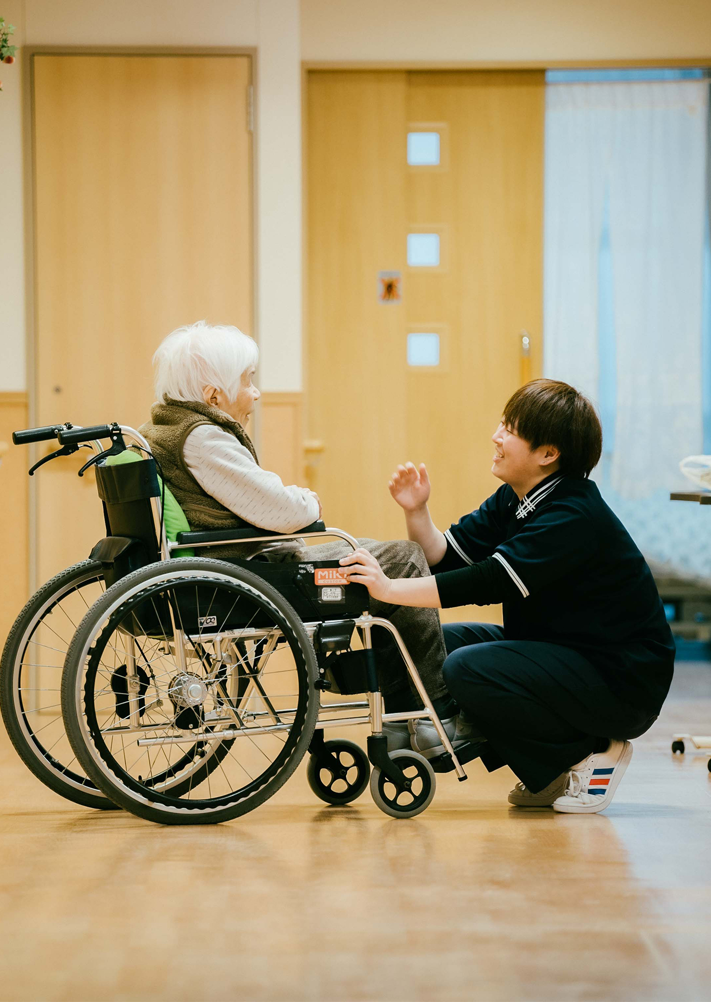 一方で特養のいいところは、一人ひとりの入居者様と長く付き合うので信頼関係が築けるところです。認知機能が少しずつ衰える中にあっても、私の顔や名前を覚えていただけると「私のこと、覚えたいと思ってくれたんだ」とじんわりと嬉しくなります。ご家族からも信頼されて、「いつもありがとう」と感謝された時にはこの仕事をしていて良かったと心から思います。